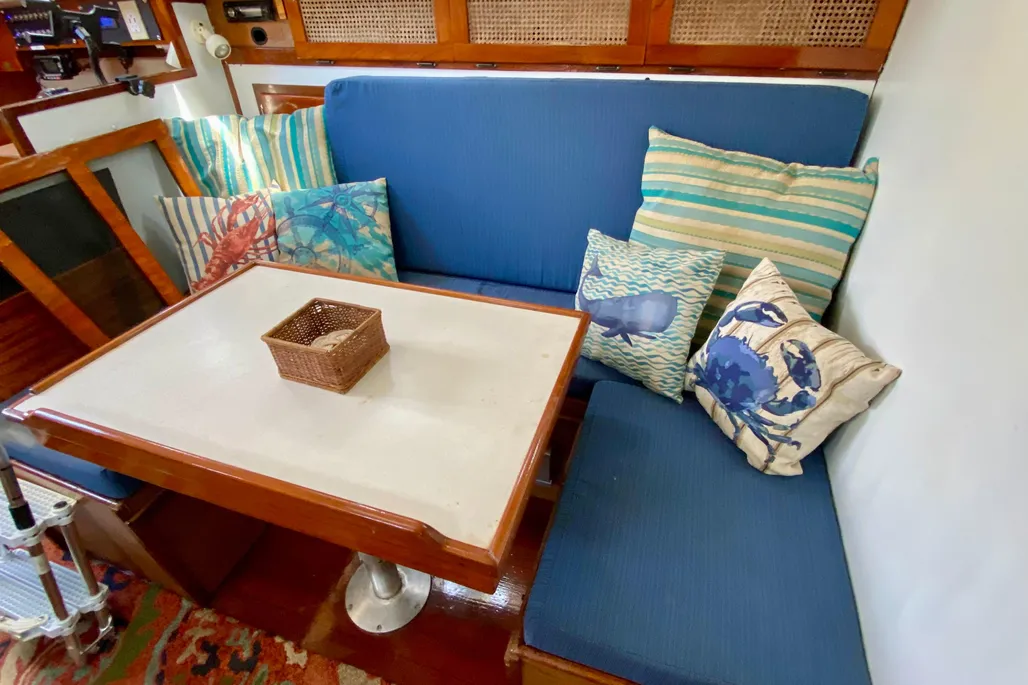 Replaced the curtains and recovered the cushions in the main cabin