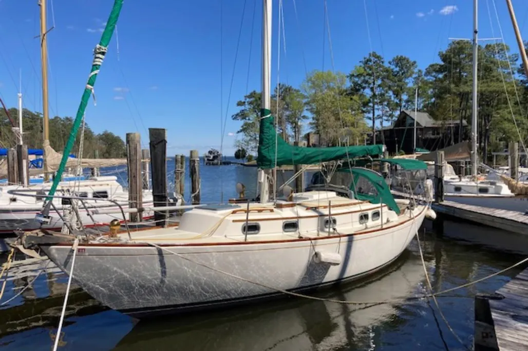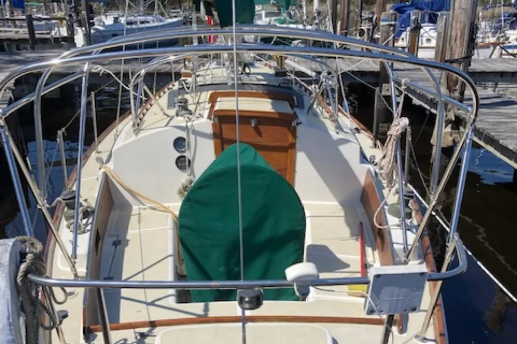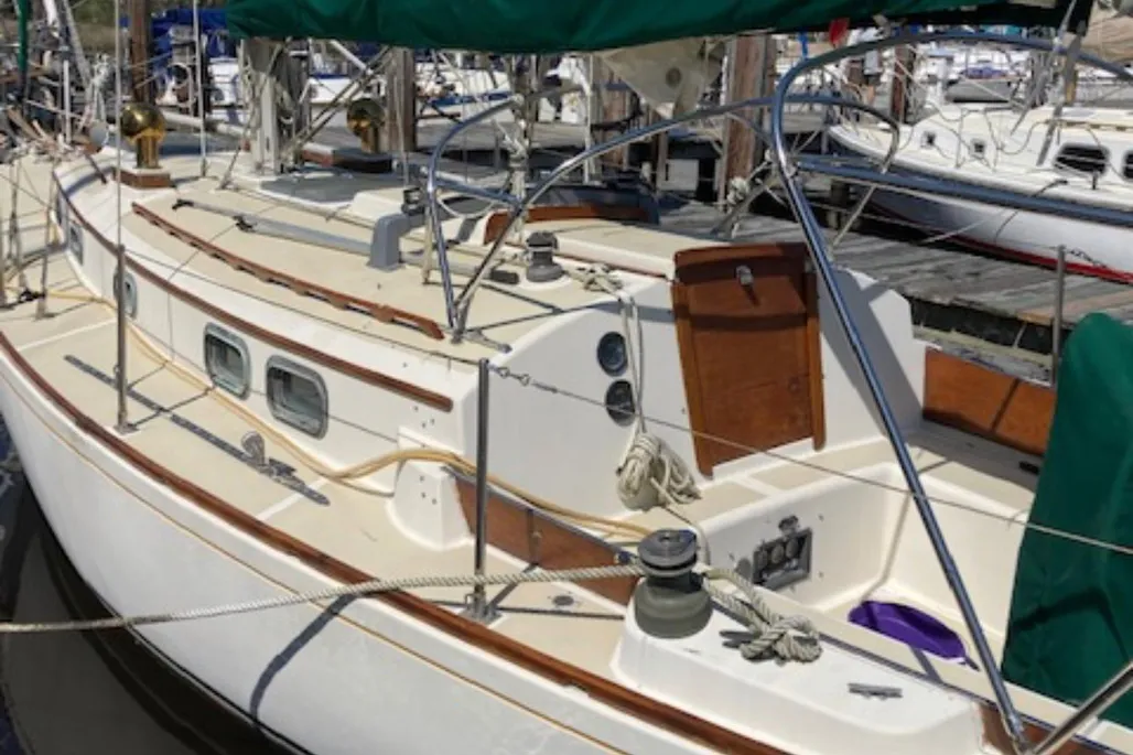 Del Sol is a three-owner 1981 Sea Sprite 34’. She is a Bill Luders-designed, C.E. Ryder-built sloop, rigged for singlehanded daysailing and perfect for weekending (oversized air conditioner).
