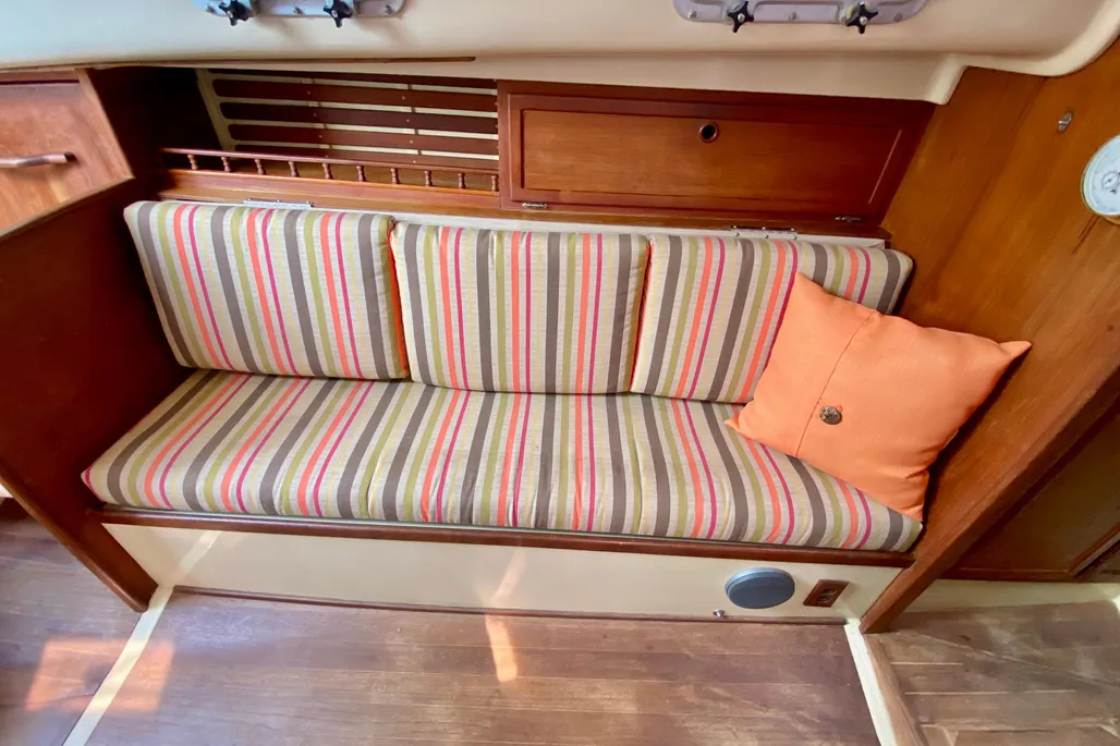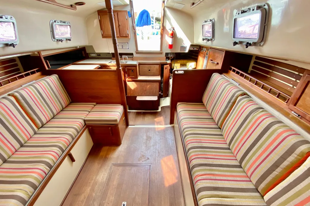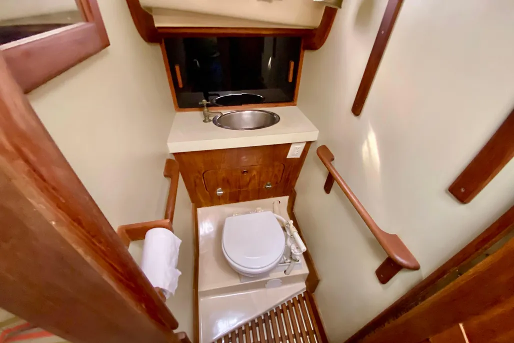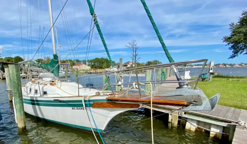 The Bayfield 32 has a distinctive clipper bow, bowsprit, and traditional lines giving her a classic look on the water. The long keel and sea worthy design provides a safe sailing platform at sea or inland waters. A protected keel mounted rudder provides excellent tracking under sail. The cutter rig allows for easy sail handling making her manageable for short handed or solo sailing. Below deck offers a worm and cozy interior with V berth forward, a main salon, and compact galley with two burner stove and oven and refrigerator. An enclosed head with shower completes her comfort features below. Ample storage for a small cruiser and thoughtful design make her ready for a daysail or extended cruising.